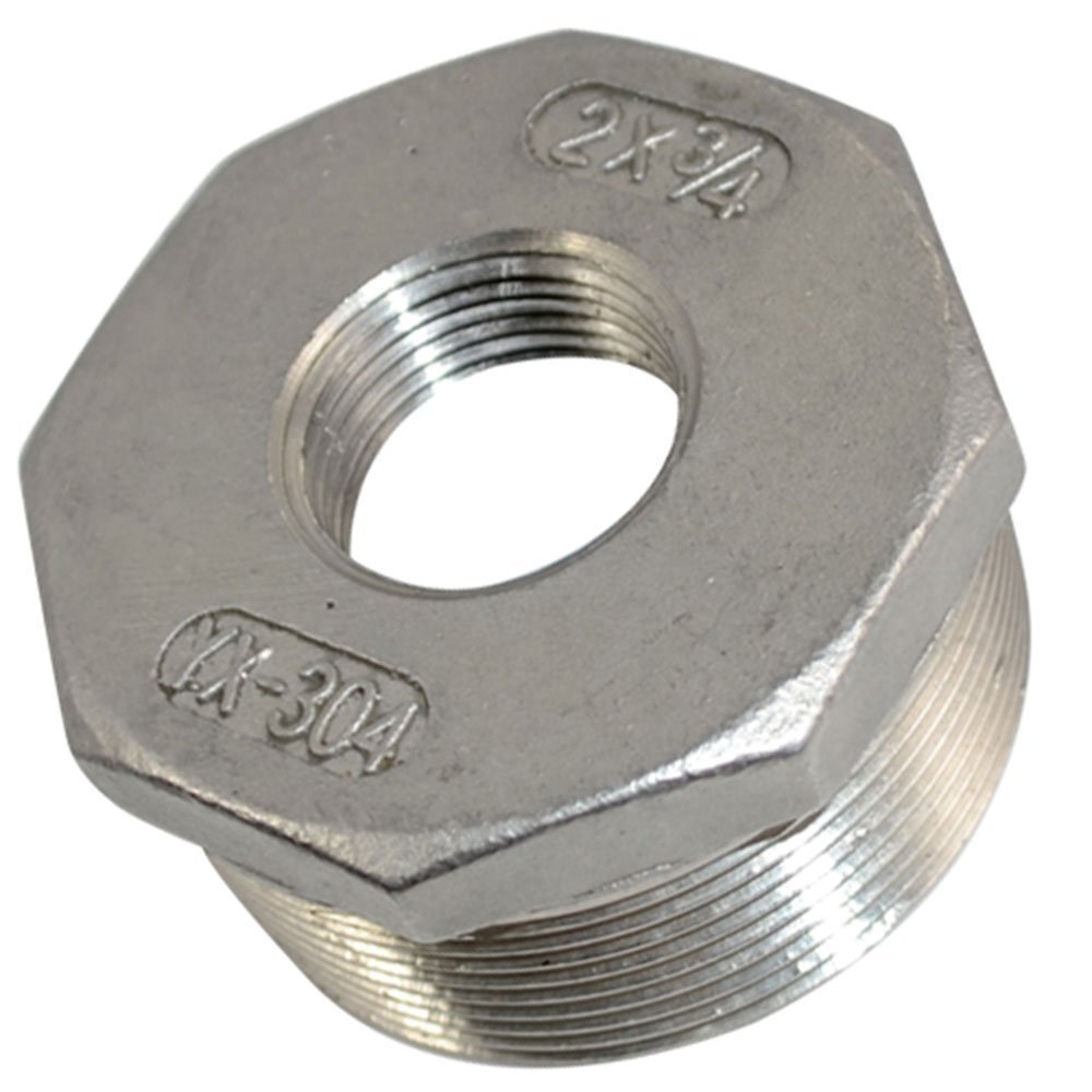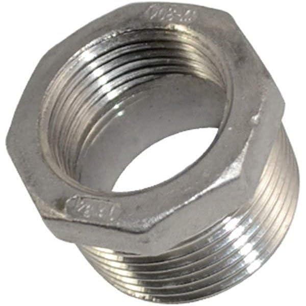 Hex Bushing, FNPT x MNPT, 3/4" x 1/2" Pipe Size - Pipe Fitting #-3 | Pkg Qty:1. 3/4" X 1/2" 150# Cast Threaded (NPT) Hex Bushing 304 Stainless Steel <SS. 3/8 x 1/4 in.