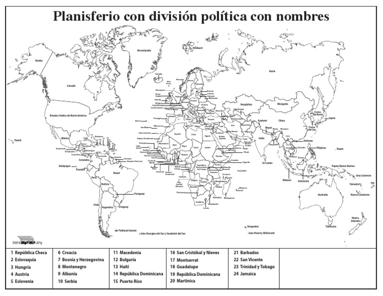 Mapamundi Con Division Politica Con Nombres Para Imprimir En Pdf
