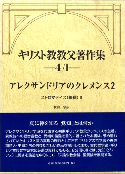 楽譜専門通販shop Miyajibooks Com キリスト教教父著作集 第4巻2 アレクサンドリアのクレメンス2