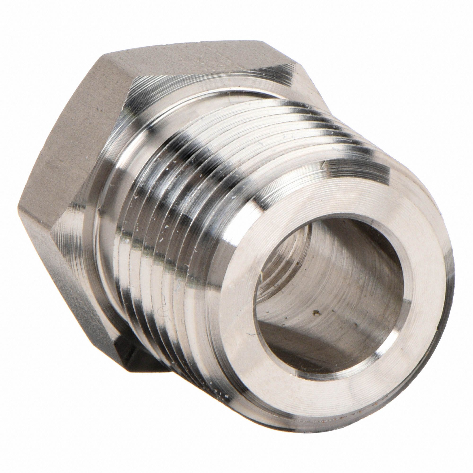 316 Stainless Steel Hex Bushing, MNPT x FNPT, 3/4 in x 1/2 in Pipe Size - Pipe Fitting. In stock and ready to ship. 3/4 X 1/2 PTR-SS Pipe & Port Reducer, Expander, Conversion PTR Parker ISO 6149 Hex Head Plug ISO 6149 (for ISO 6149-1 Port).