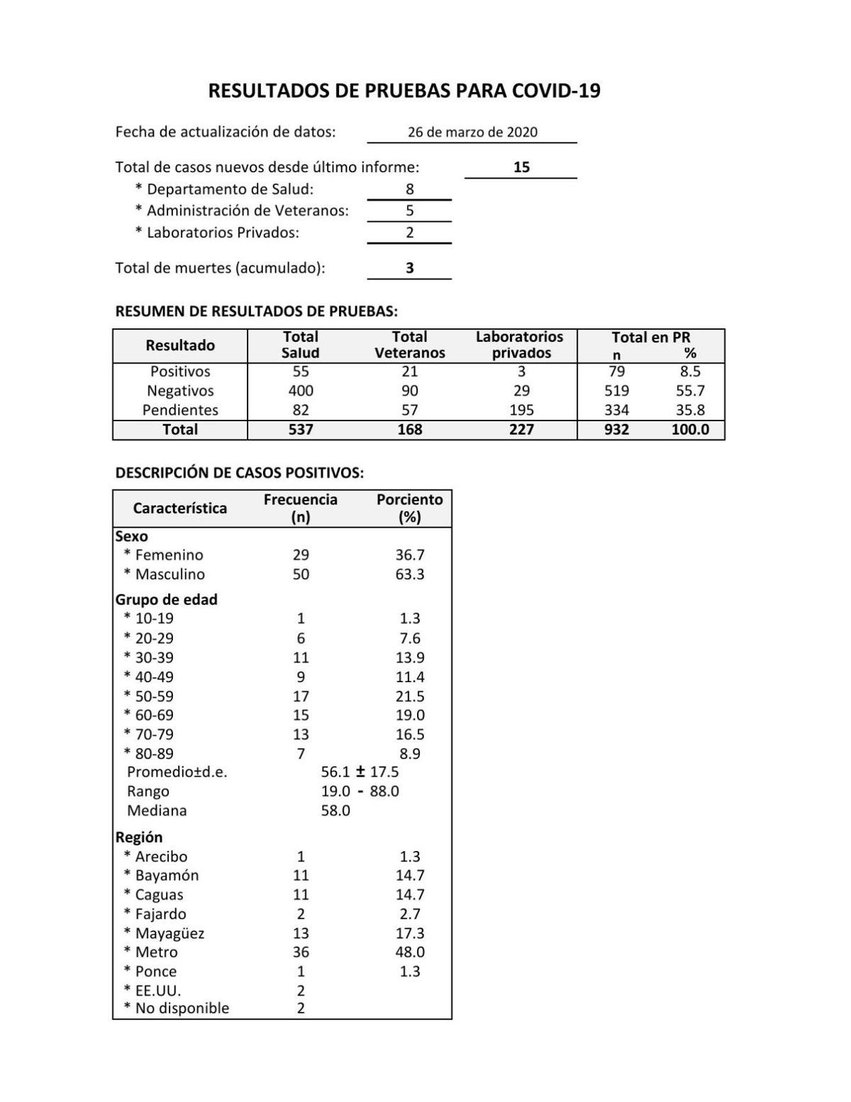Según establece el documento, en Puerto Rico existen 174 personas contagiadas hasta el momento. En San Juan, Puerto Rico a 18 de noviembre de 03. Este Reglamento aplica a través de todo el Estado Libre Asociado de Puerto Rico y dentro de las áreas cubiertas por los mapas de calificación.