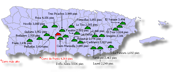 La del noroeste, centro y suroeste, en base a la edad y la composición de las rocas presentes. Under the following conditions:. El siguiente mapa muestra la ubucación geográfica de los picos más altos en Puerto Rico.