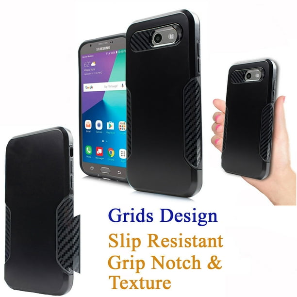 For 5 Samsung Galaxy J3 17 Emerge J3 Prime Case Phone Case Grip Notch Design Fiber Grids Scratch Shield Hybrid Shock Bumper Slim Cover Black Walmart Com Walmart Com