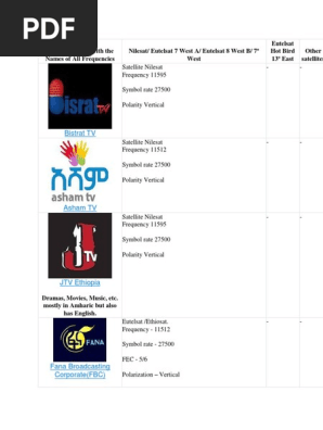 Free ethiopian tv channel frequency nilesat. December 2, 18 – ETV 1, ETV 3 Frequency:. H 200 3/4.