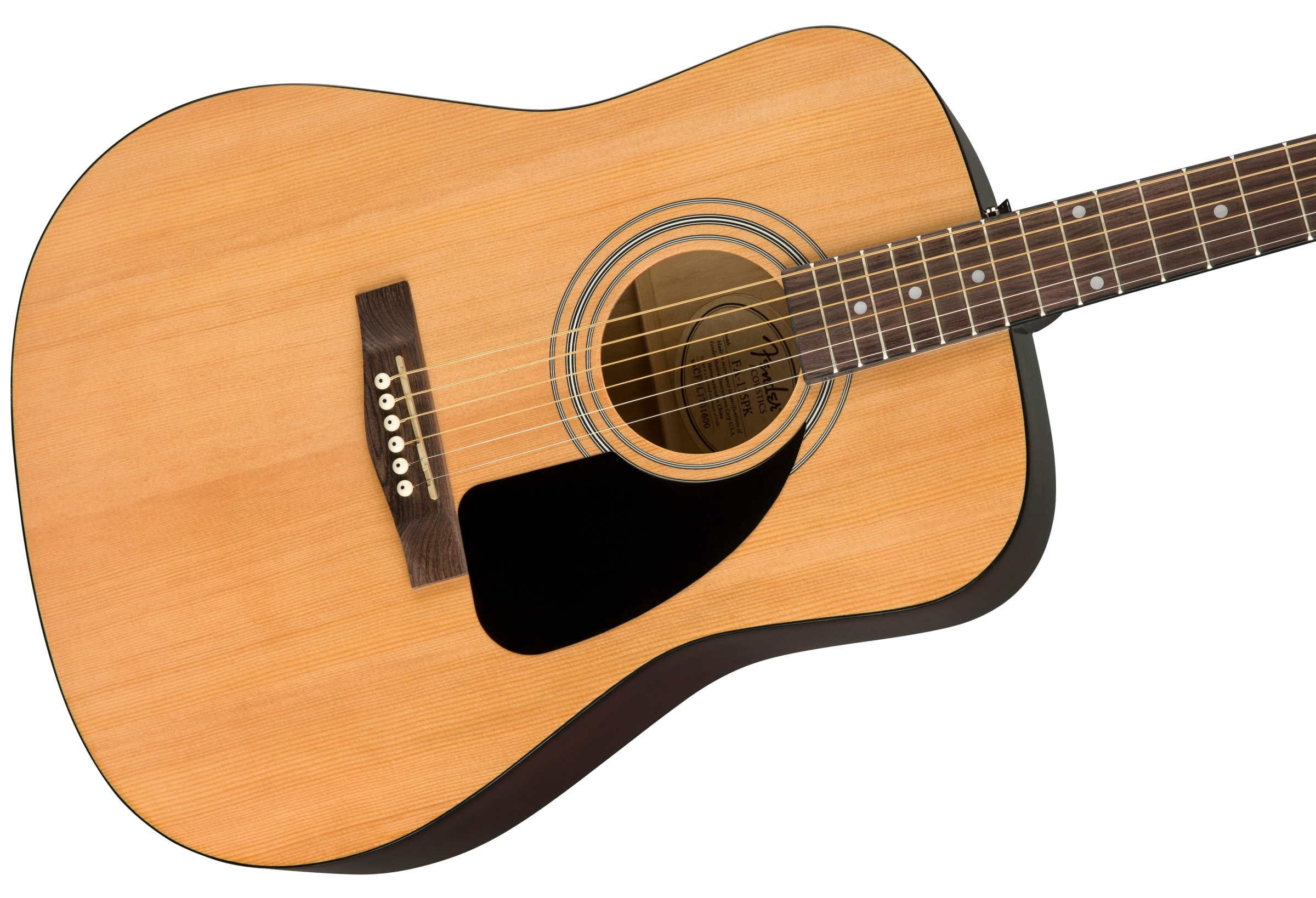 Fender FA-115 Dreadnought Acoustic Guitar - Natural Bundle with Gig Bag, Tuner, Strings, Strap, and Picks. Besides being affordable, the Fender FA-100 set is also extremely comprehensive. Everything you need to get started on a world of acoustic enjoyment is right here-a rich-sounding dreadnought acoustic guitar and accessories including a padded gig bag for protection and easy transport, comfortable strap and clip-on electronic tuner for easy and solidly reliable.