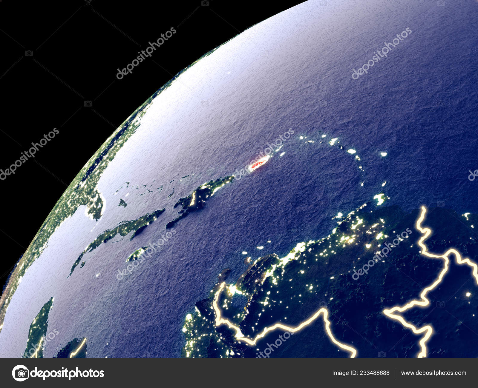 Satellite View Puerto Rico Earth City Lights Extremely Detailed Plastic Stock Photo C Tom Griger