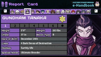 Gundham tanaka?" You said "Well yea!. Danganronpa is a video game that has adaptations of anime and manga. Gundham Tanaka is my favorite character from Danganronpa 2:.