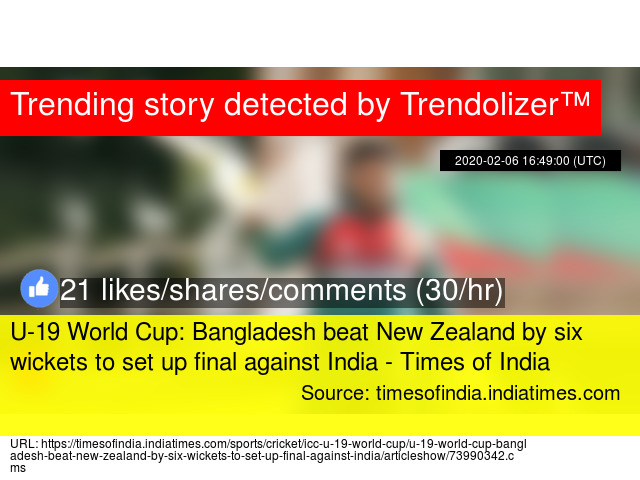 U 19 World Cup Bangladesh Beat New Zealand By Six Wickets To Set Up Final Against India Times Of India